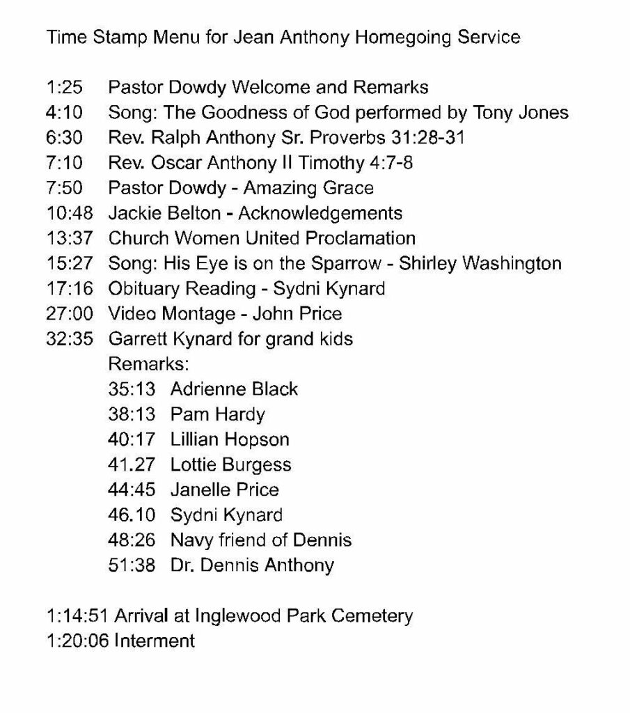 Jean Anthony Homegoing